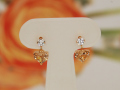 ハートのキュービックジルコニアがかわいい揺れるピンクゴールドのピアス。 |
