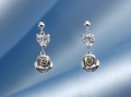 ホワイトゴールドの美しい薔薇の花は枯れることなく いつまでもその輝きをみせてくれる揺れるピアスです。 |
