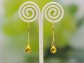 | オレンジイエローのシトリンが耳元で元気いっぱいキラキラして、お顔の表情をパッと明るくしてくれるます。 ベージュやブラウンをメインカラーとしたファッションに合わせて一際輝くハチミツ色をたっぷりと味わえるフックタイプのイエローゴールドピアスです。 |